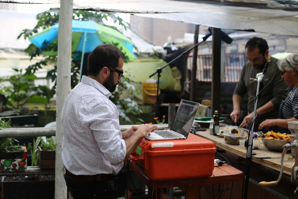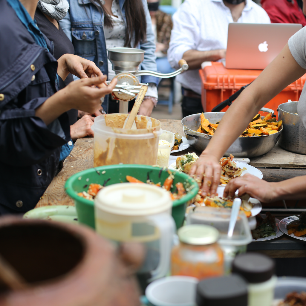 Group of collaborators: Elena Villamil (cooking and testimony), María Buenaventura (cooking), Yudy Esmeralda Ramirez (singing and market shouting) and workshop participants (Camilo Quiroga, Cristina Consuegra, Laura Escobar, Victoria Portela, Luza Quiceno Quiroga, Sabina Gámez and Camilo Leyva)