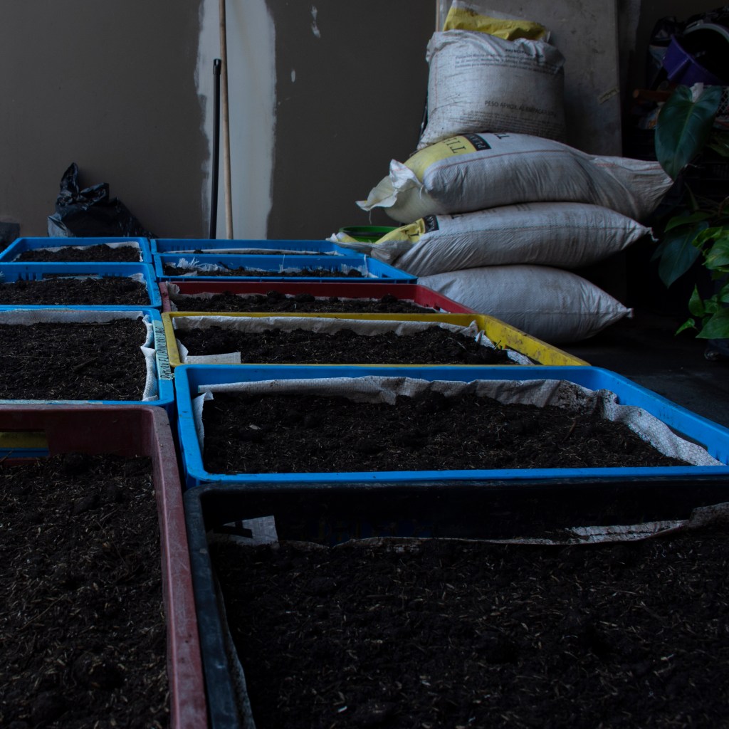 Finally, the work is completed with its sound component, which has the double function of strengthening the ecosystem that sustains the plants. open a communicating vessel between the public and these living beings. To do this, Vélez deploys the sound atmosphere through two systems with specific functions. On the one hand, a set of amplifiers, with eight channels that surround the crop at the limits of the room, reproducing a piece composed of sinusoidal waves and other acoustic elements. On the other hand, in front of the field, there is a microphone, open to public participation and connected to a transducer arranged directly on the garden containers, in contact with the soil and the roots of the plants. The sum of these two audio systems invites, in a speculative way, to generate affectionate and sensitive relationships between all the members of the ecosystem. While the musical composition has been created to accelerate the growth of plants and improve their biological systems, the human voice, generated during audience participation, connects the project with traditional cultural practices that consider it healthy to talk to plants. It should be noted that various investigations of interest to Vélez indicate a special sensitivity of these living beings to sound and vibration stimuli. The installation as a whole is welcoming and hypnotic. The reddish light fading gradually, and leaving the periphery of the rectangular room in shadow, produces a visual effect on the crop, which seems to germinate strange iridescent plants. Added to this, the incessant hum of the sine waves is annoying at first, and calming as the body adjusts to this environment. For its part, the experience of speaking to beetroots through the microphone is strange at an auditory level, since the amplification source is not easily identifiable, which produces the sensation of hearing one’s voice inside the head. In other words, the sound does not seem to spread out in space but converges on the speaker himself, who consequently listens to what the plants feel. Finally, it is noteworthy that detailed observation of the work allows us to find a whole natural ecosystem, colonies of tiny insects, butterflies or worms, which is added to the artificial domain made up of the technical infrastructure, the museum staff and the visitors themselves. This meeting highlights the problematic system circumscribed by Vélez and invites us to reflect on our cultural practices, forms of consumption and the near future. As the culmination of the exhibition, the beets will be harvested and consumed by the MAMM team, closing the cycle inherent to the cultivation of vegetables.