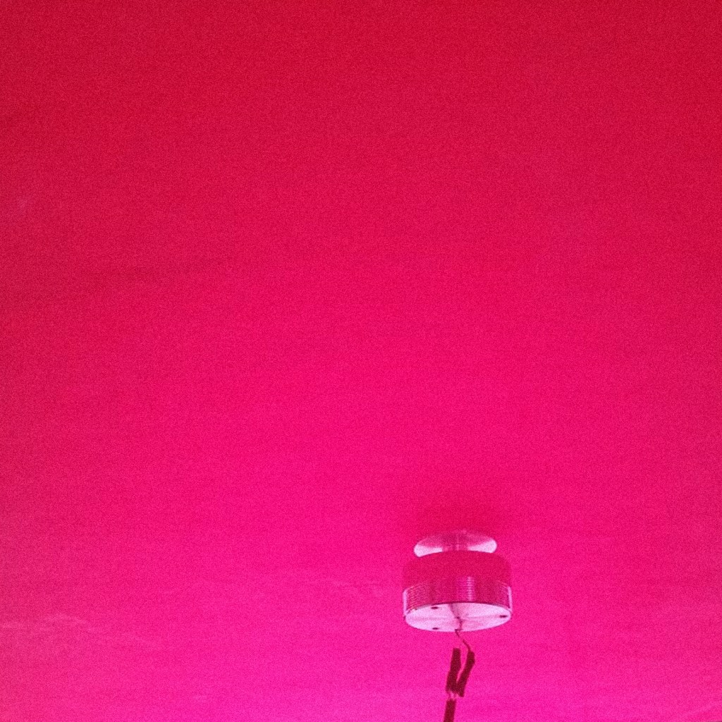 The two lamps project a combination of frequencies that create a violet light that feeds the plants with artificial light. This colour has a soothing effect on humans creating a space where the well-being of vegetables and the spectators can converge. For the video, I processed a speeded-up NASA documentation of the sun using a violet filter. The video presents the sun rotating for 18 months. The idea of the video originates when the Beijing mayoralty projected an image of the sun on giant screens placed in public spaces. Because of the high levels of contamination, in the streets, the sun could not be seen. The video refers to the inhospitable light conditions of the room creating sensorial correspondences with the lamps. The circularity of the rotation of the sun in the video creates a connection with the sine tones of the sound composition. The explosions of the solar flares, produce interesting equivalences with the designed sounds of insects chewing.