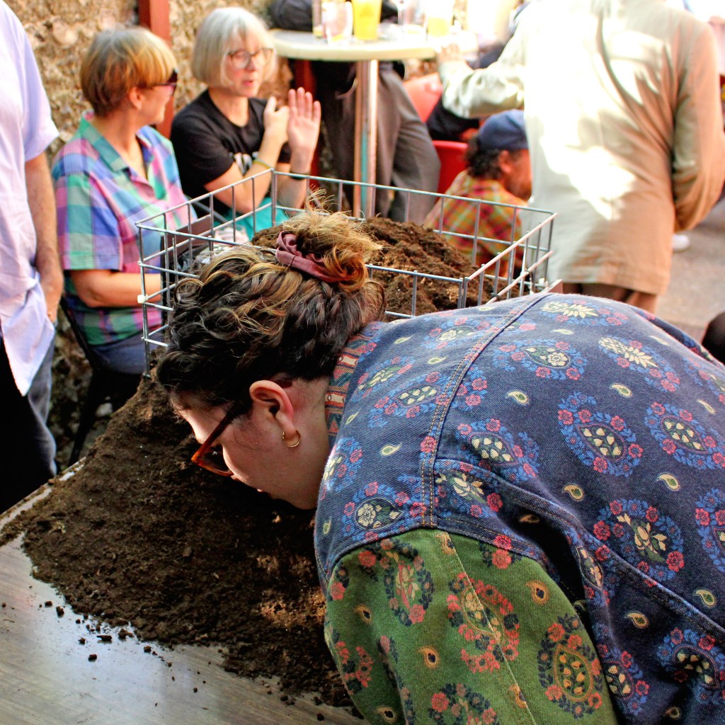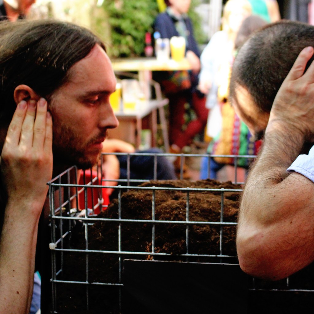 “The Acoustics of Rootedness” consists of a soil transducer developed to disseminate vibration through the soil. The piece invites the visitor to lend their ear towards the soil and the transducer to listener organic acoustic activity recorded and sine waves at which plant roots are sensible to.