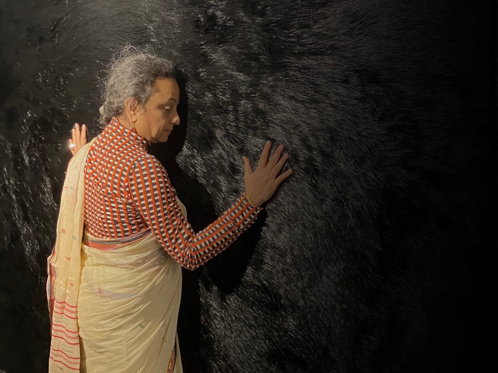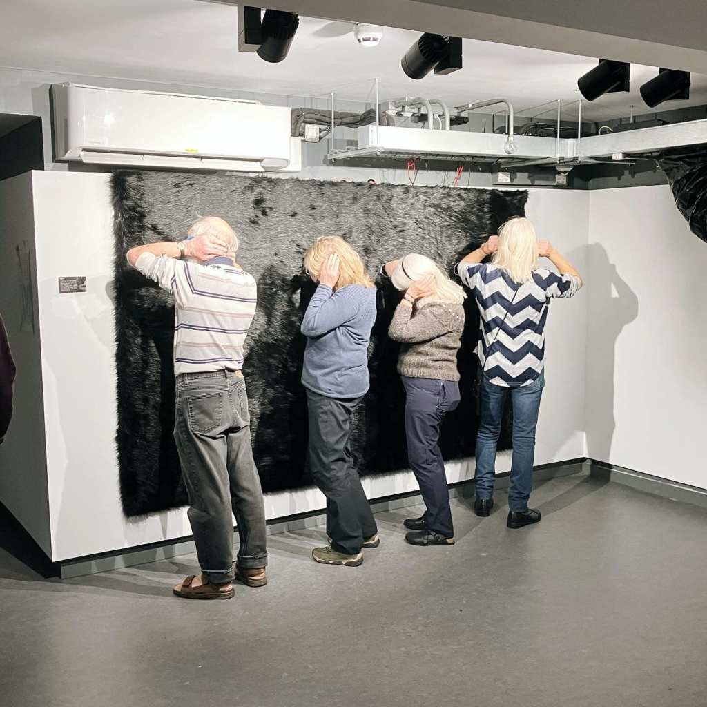 The form of the installation creates a bodily bonding experience with the river through the vibration of its sounds. Through this immersive sensory experience we can acknowledge water as a nourishing presence inside our bodies, and thus our connectedness with the well-being of our local waterways. Extensive underwater and subterranean recordings were made of the River Calder using a hydrophone and a geophone to emphasise the vibrating biodiversity of the site, including earthworms, snails, slugs, frogs, toads, newts, fishes, and an enormous variety of plants, among other ‘sounding species’. The field methodology centred on environments whose acoustics are unfamiliar to our airborne-fixed listening, recognising the river as an ‘Otherness’ to which we should extend empathy, engaging with care and recognising our interdependency. The use of bone transducers creates a corporeal multi-sensorial experience which is capable of connecting the listener with the river sounds on a deep, foundational level. Fur advances a pleasant experience to touch while establishing tension with the material of the water, as textile factories were pollutants of the Calder during the second half of the 20th century.