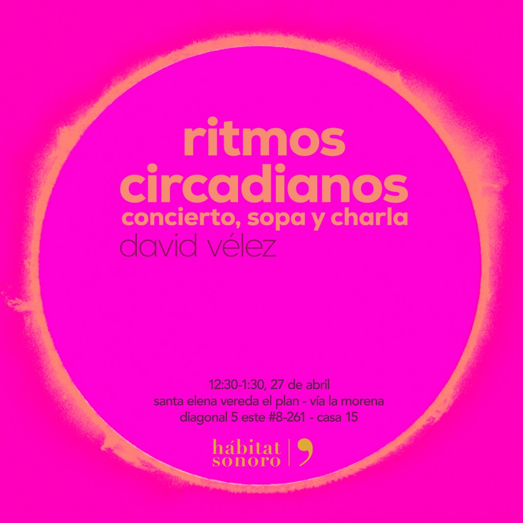 En esta presentación, David Vélez nos conectó con los ritmos, frecuencias, sabores y nutrientes a través de los cuales las plantas comestibles y los seres humanos nos comunicamos. Para ello, Vélez, junto con un grupo de colaboradores, cocinó un Sancocho Circadiano, vegetariano, cuyo caldo fue el resultado de una cocción lenta y prolongada, con el fin de que absorbiera toda la energía, nutrientes y aromas de las hortalizas. Algunos de estos vegetales fueron previamente cultivados bajo estimulación sonora, utilizando sonidos desarrollados por Vélez en su investigación.