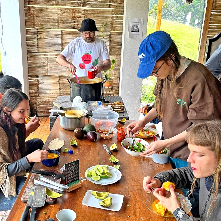 In this presentation, David Vélez connected us with the rhythms, frequencies, flavors, and nutrients through which edible plants and human beings communicate. To do so, Vélez, along with a group of collaborators, prepared a vegetarian Circadian Sancocho, a stew whose broth was the result of slow, prolonged cooking, allowing it to absorb all the energy, nutrients, and aromas of the vegetables. Some of these vegetables had been previously grown under sonic stimulation, using sounds developed by Vélez in his research.