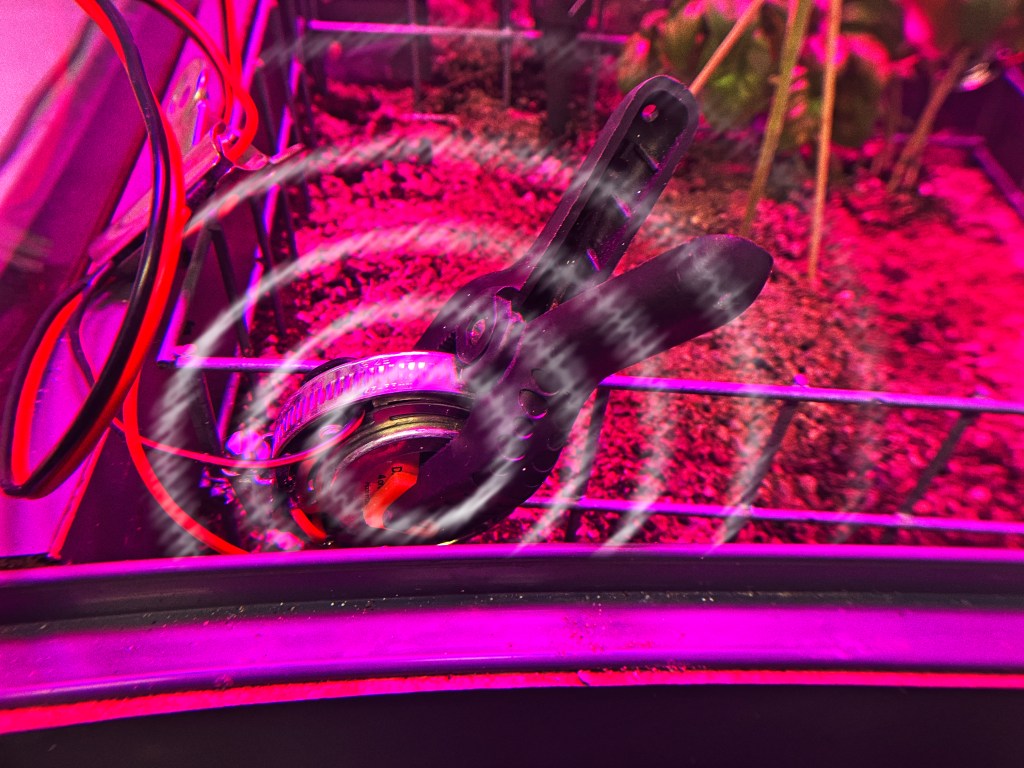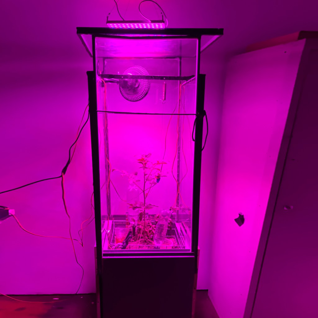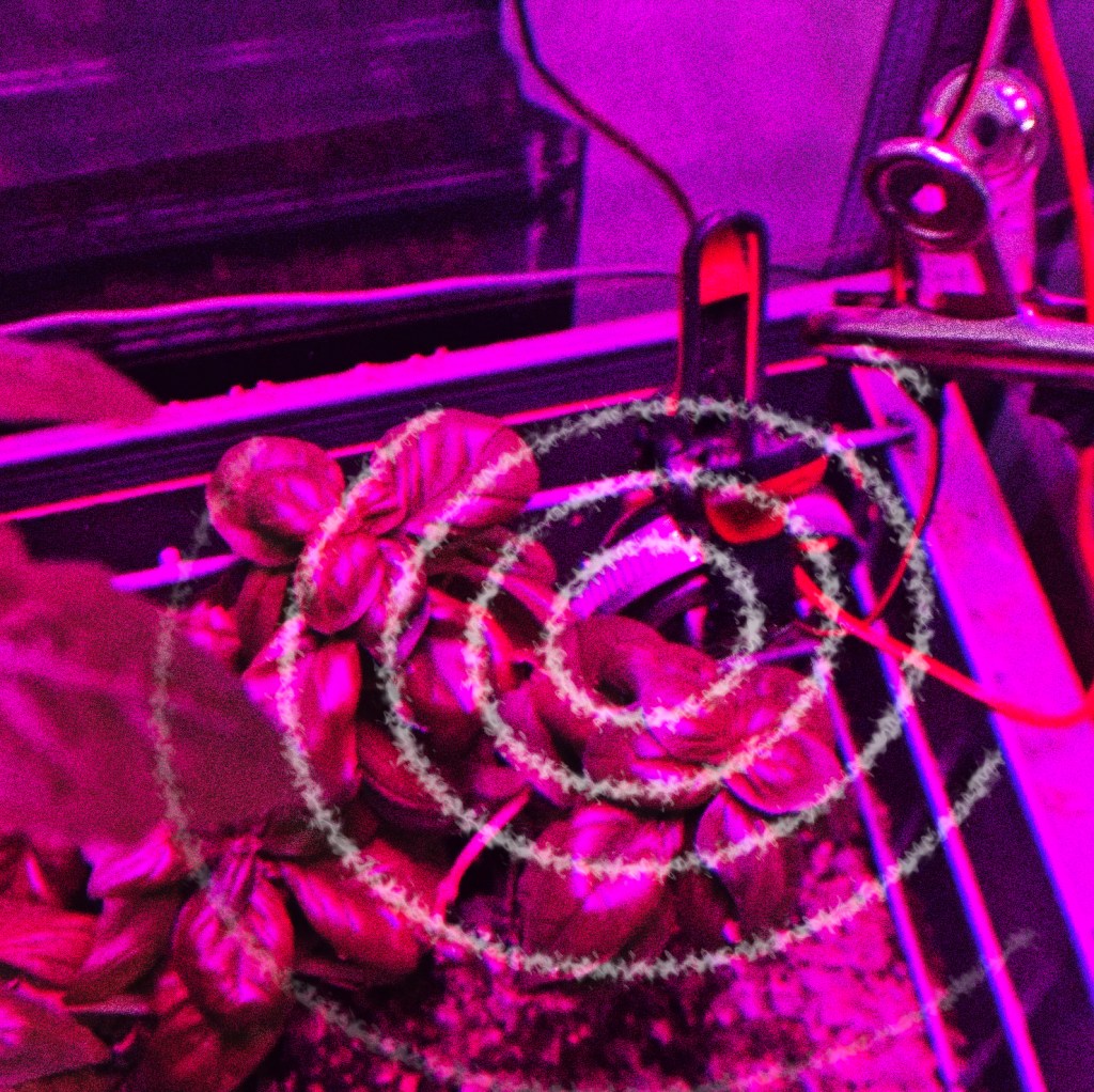 Sonic stimulation towards the leaf and soil using 2 x transducers activating a steel grid that propagates vibration to the soil.